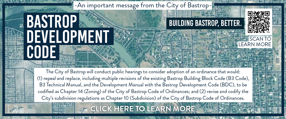 Please note: All City Council, Planning & Zoning / Zoning Board of Adjustment, and Bastrop Economic Development Corporation meetings are broadcast live on the City of Bastrop's Facebook page at the scheduled date and time. Recordings of said meetings will be made available 48 to 72 hours after the meeting, allowing time for video compression and web upload. You can access meeting videos on the City of Bastrop's YouTube page. For further information or inquiries, please contact us at (512) 332-8800.